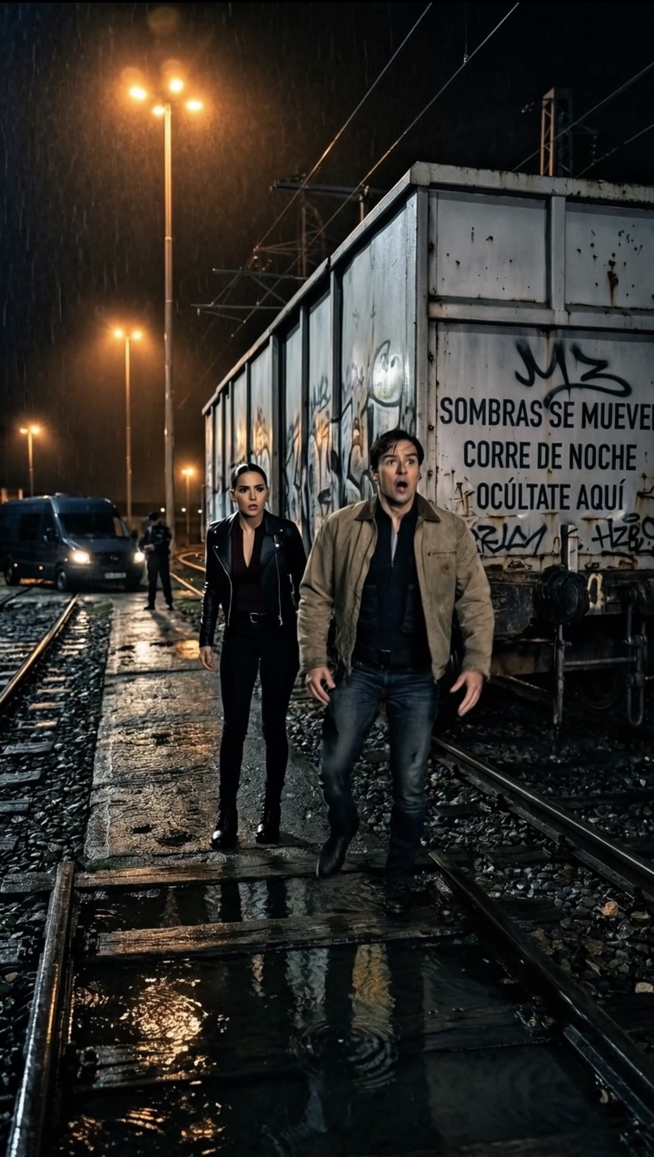 En medio de ese silencio inquietante, dos figuras corrían desesperadamente por un estrecho callejón iluminado solo por un par de faroles parpadeantes.